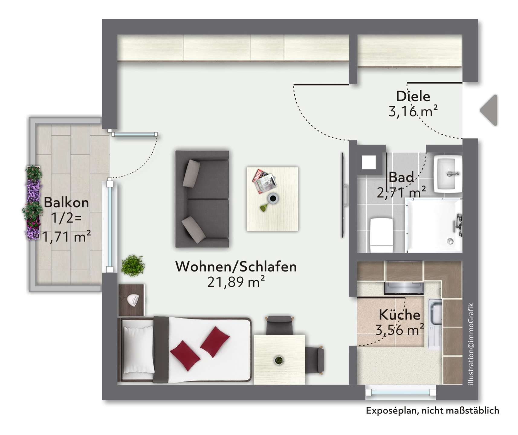 Die helle 1-Zimmer-Wohnung überzeugt durch eine praktische Raumaufteilung und eine ruhige Lage. Vom Wohn- und Schlafbereich aus gelangen Sie direkt auf den nach Südosten ausgerichteten Balkon, der einen schönen Platz zum Entspannen bietet. Die separate Küche ist mit einem Fenster ausgestattet, verfügt über einen Fliesenboden sowie einen Anschluss für die Waschmaschine und bietet ausreichend Platz für eine kleine Küchenzeile. Das innenliegende Badezimmer stammt aus den 80er Jahren, ist vollständig gefliest und mit Dusche sowie WC versehen. Der Wohn- und Schlafraum ist mit einem Laminatboden ausgelegt und lässt sich vielseitig einrichten. Beheizt wird die Wohnung über eine Zentralheizung mit Heizkörpern, während die Warmwasseraufbereitung für Küche und Bad über einen neuen Elektroboiler erfolgt. Kunststofffenster sorgen für eine gute Wärmedämmung. Zur Wohnung gehört außerdem ein praktisches Kellerabteil, das zusätzlichen Stauraum bietet. Insgesamt präsentiert sich die Wohnung als gepflegte, kompakte Einheit mit funktionaler Ausstattung und attraktivem Balkon – ideal für Singles oder Kapitalanleger.
